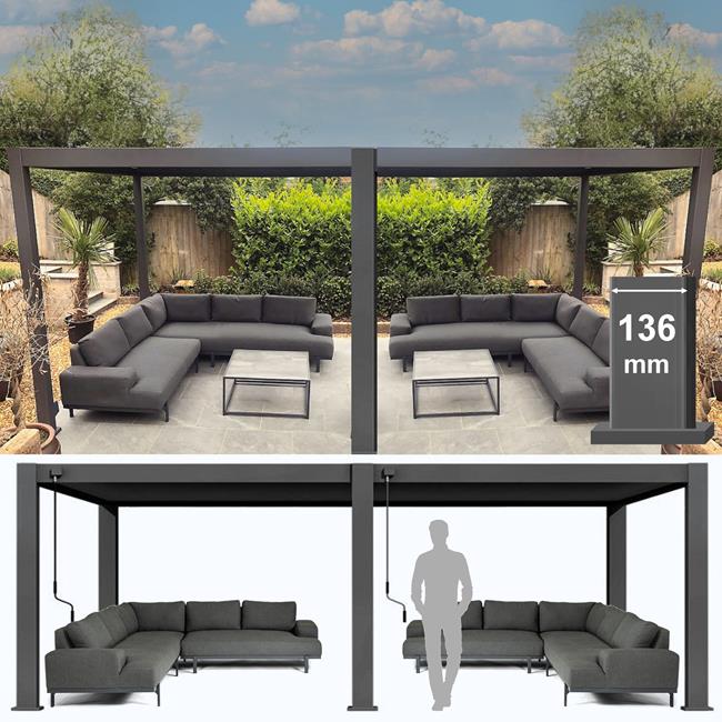 Westminster - 7.2 x 3.6m Louvred Roof Pergola Inc 2 Sofas