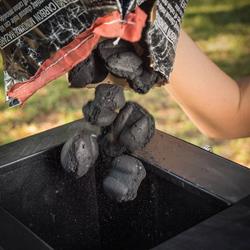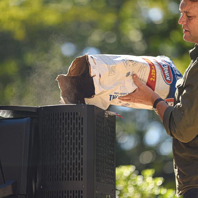 The charcoal hopper holds 4.5kg of lump charcoal or 7kg of briquettes for 12-15 hours of use and gravity ensures you have constant fuel to the fire.