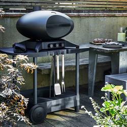 The Forno Grande outer is made from moulded aluminium and the grilling grid from solid cast iron. The minimalist handle completes the front of the form, both in terms of design and ergonomics. At the same time, the four-legged frame provides a stable foundation which naturally and discretely makes room for both control panel and gas connections.