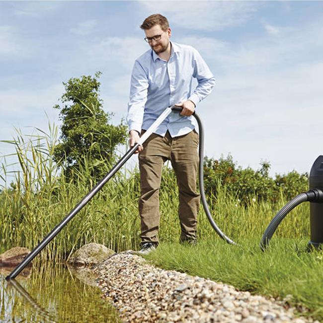 The PondoVac Classic is a simple pond vacuum for occasional use on smaller ponds. It can also be used as a dry vacuum. It does require regular intervals for automatic emptying of the container.
