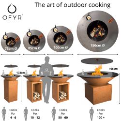 The OFYR 100cm has a larger cooking surface than the 85 models. Moreover, different temperature zones between the inside and outside of the plate are created