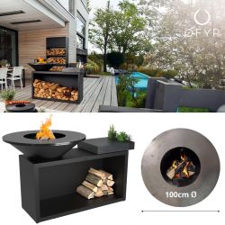 This all-in-one unit combines unbeatable style and functionality in a compact design. The OFYR Island provides everything you need for an ultimate outdoor cooking experience with friends or family. It includes an 85 cm or 100 cm OFYR cooking unit with wood storage, a chopping board and a handy accessories tray for utensils and condiments. The chopping board is available in teak wood or dark grey ceramic.