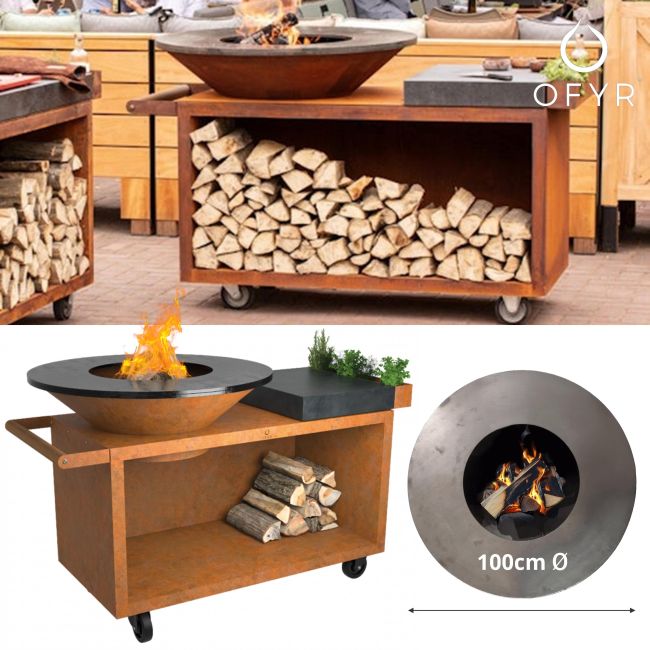 OFYR 100cm Island Pro - Corten Steel With Wheels
