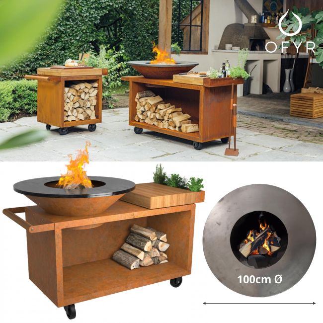 OFYR 100cm Island Pro - Corten Steel With Wheels