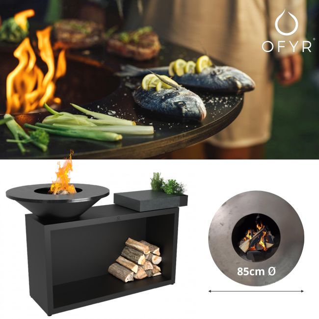 This all-in-one unit combines unbeatable style and functionality in a compact design. The OFYR Island provides everything you need for an ultimate outdoor cooking experience with friends or family. It includes an 85 cm or 100 cm OFYR cooking unit with wood storage, a chopping board and a handy accessories tray for utensils and condiments. The chopping board is available in teak wood or dark grey ceramic.
