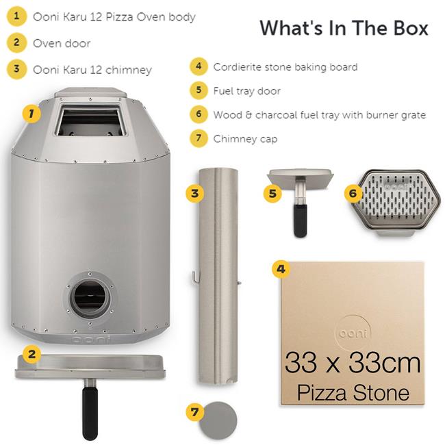 In a word, flexibility. Ooni Karu 12 combines optimum, multi-fuel performance with sophisticated design and portability. Karu 12 lets you use wood, charcoal or gas burner (sold separately) to make flame-cooked, restaurant-quality pizzas in as little as 60 seconds.