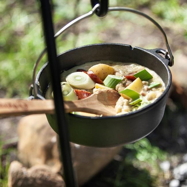 The special quality of these Dutch Ovens is reflected in the even wall thicknesses and the treated edges, which ensure optimum heat distribution and storage. This means your food cooks evenly. The lid can also be used as a pan and has a high rim to prevent charcoal or briquettes from falling down. The legendary Petromax Dutch Oven can be used in the fire, over the fire, in the Atago, in the oven, on the grill and even on all types of stoves. So there are no limits to your creativity when cooking and you can enjoy maximum flexibility.