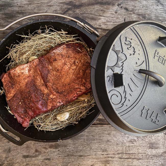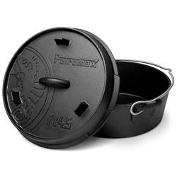 The special quality of these Dutch Ovens is reflected in the even wall thicknesses and the treated edges, which ensure optimum heat distribution and storage. This means your food cooks evenly. The lid can also be used as a pan and has a high rim to prevent charcoal or briquettes from falling down. The legendary Petromax Dutch Oven can be used in the fire, over the fire, in the Atago, in the oven, on the grill and even on all types of stoves. So there are no limits to your creativity when cooking and you can enjoy maximum flexibility.