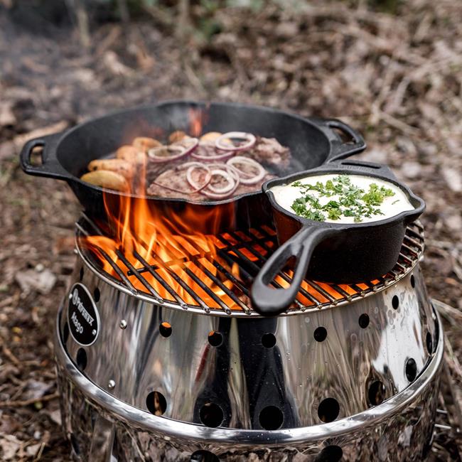 The sauce pot comes pre-seasoned and is suitable for all types of stoves and open fires.
