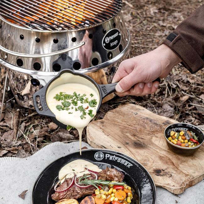 The Petromax Sauce Pot makes it easier to prepare roux, stocks or other sauce bases in your outdoor kitchen thanks to its handy shape and handle. The sauce pot is also ideal for simmering braised onions or preparing brown butter. It can also be used to heat up small portion-sized meals. You can count on intense flavor and real character, because thanks to the cast iron, even the smallest of dishes is given a particularly characteristic touch. The heat-retaining properties keep your sauce or snack warm long after the heat source has been removed and the pouring aid allows you to serve with precision.