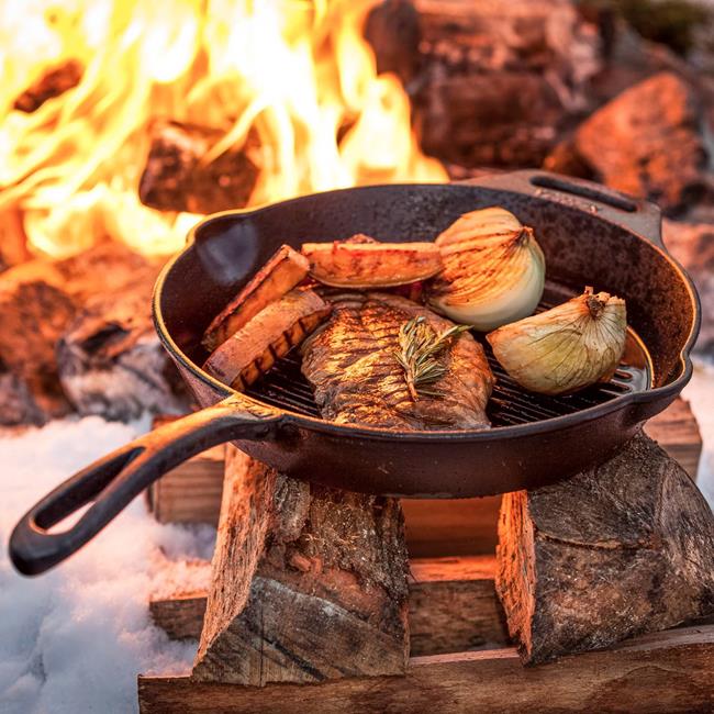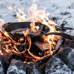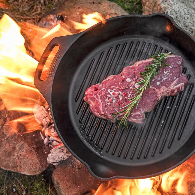 The Petromax Skillet is a great all-rounder for most barbecue cooks. Thanks to its original material, you benefit from an unmistakable barbecue taste wherever you are, because cast iron intensifies the taste of the food prepared in it. This gives your meat, fish or vegetables a characteristic note that you won't want to do without. Thanks to the high heat retention, you can sear food at a high temperature and your pan will cook it again easily after removing the heat source.