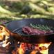 The patina, which becomes stronger with every use, prevents your food from sticking. This chemical-free non-stick effect occurs naturally and makes the grill fire pan even more robust and resistant over time. The stronger the patina, the less oil and fat you need when cooking. Food liquids collect in the grooves, leaving behind the typical roasted stripes and an incomparable aroma.