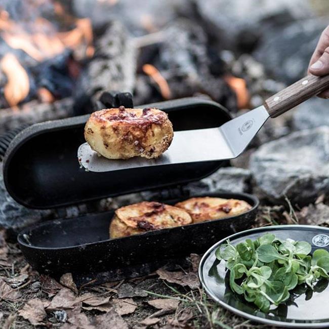 The stainless steel plate tapers towards the front edge so that you always have everything under control when sizzling. This keeps it pliable and flexible, so you can turn food of any size. At the same time, the spatula is stable enough to remove drippings from the bottom of the pan or pot. Thanks to the hole at the end of the handle, you can easily hang it up and store it away. Because the grill and pan turner comes with a short handle, it will quickly become an indispensable kitchen friend.