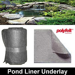 Underlayment is a specialized heavy synthetic matting that is made especially for protecting rubber pond liners. It is required under the rubber pond liner for protection against tears and punctures from rocks or tree roots. It also provides for enhanced soil stability and erosion control