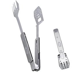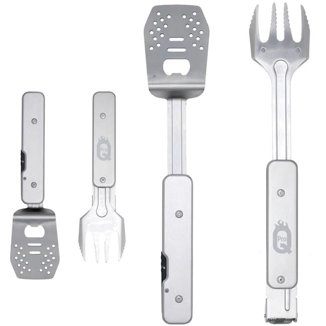 The ProQ BBQ Multi-Tool is ideal for travelling light. This ingenious multi-functional BBQ tools set transforms, with a click and a twist, between a handy pair of BBQ tongs, grill fork, spatula and a bottle opener.