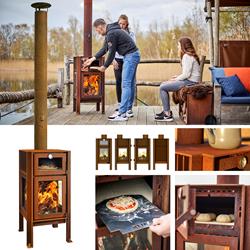 ![]() Outdoor Wood-Burning Stove + Pizza Oven 3 Side Glass With 4 Legs CorTen Rust Finish (Arrives Pre- Rusted) IN STOCK Availability: IN STOCK Product Code: QUERCUS |