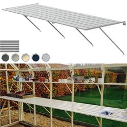 Sturdy aluminium slat greenhouse staging, adjustable height, with good air-flow & ventilation. Available in plain "Mill Finish" Aluminium (Silver) or Powder Coated colours to suit your Robinsons Greenhouse