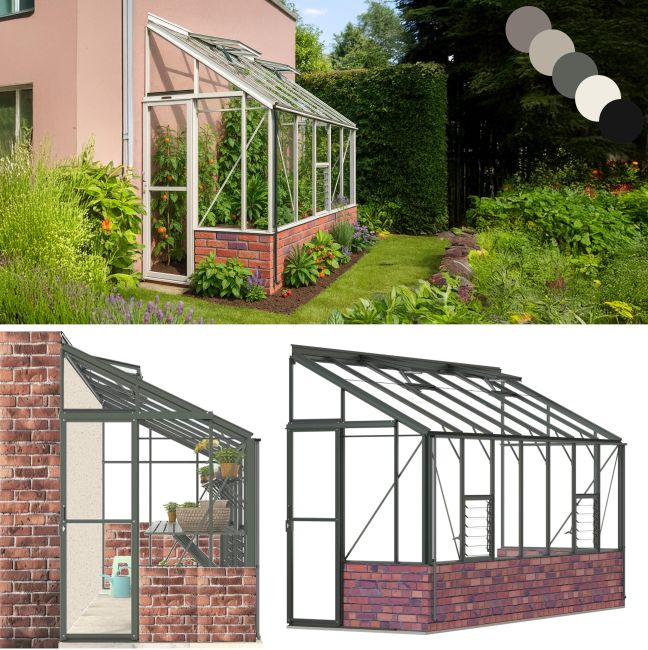 Robinsons spacious Lean-to can be fixed to most walls, although a southerly aspect is preferable. No extra base plinth is required, so there is no unsightly threshold strip. This multi purpose building can be used as a greenhouse or a sun lounge. Toughened safety glass is supplied as standard. The glass is retained with exterior grade UPVC and stainless steel screws.