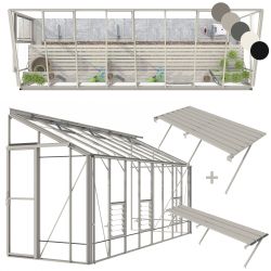 Robinsons spacious Lean-to can be fixed to most walls, although a southerly aspect is preferable. No extra base plinth is required, so there is no unsightly threshold strip. This multi purpose building can be used as a greenhouse or a sun lounge. Toughened safety glass is supplied as standard. The glass is retained with exterior grade UPVC and stainless steel screws.