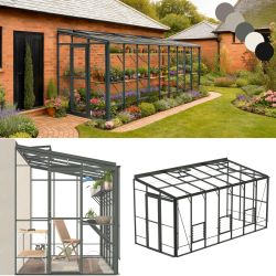 Robinsons spacious Lean-to can be fixed to most walls, although a southerly aspect is preferable. No extra base plinth is required, so there is no unsightly threshold strip. This multi purpose building can be used as a greenhouse or a sun lounge. Toughened safety glass is supplied as standard. The glass is retained with exterior grade UPVC and stainless steel screws.