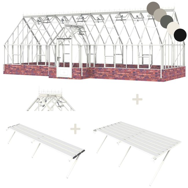 14' x 32' Robinsons Ramsbury Dwarf Wall - 14ft Deep Victorian Dwarf Wall Greenhouses With Porch - Ultimate Package