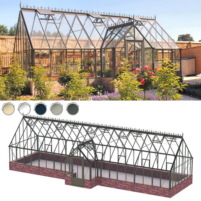 14' x 40' Robinsons Ramsbury Dwarf Wall - 14ft Deep Victorian Dwarf Wall Greenhouses With Porch