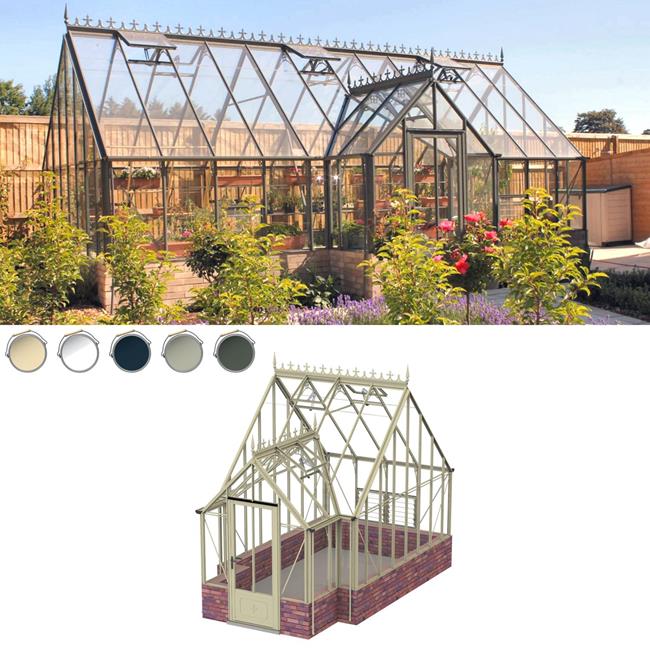14' x 8' Robinsons Ramsbury Dwarf Wall - 14ft Deep Victorian Dwarf Wall Greenhouses With Porch