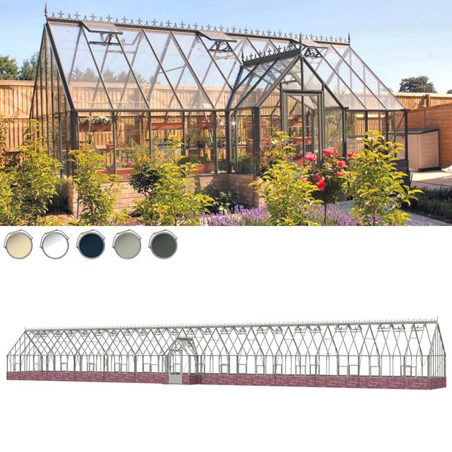 14' x 98' Robinsons Ramsbury Dwarf Wall - 14ft Deep Victorian Dwarf Wall Greenhouses With Porch