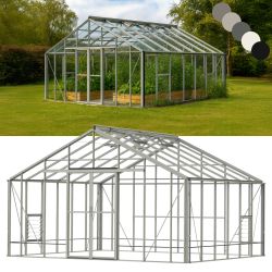 The Renown Professional is 14' wide, with lengths from 8' upwards in 2' increments. There is no limit to the length. Like the rest of the range, it is available in green or mill finishes and comes with toughened glass as standard.