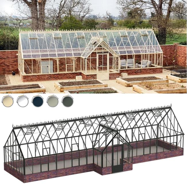15' x 44' Robinsons Roemoor - 15ft Deep Victorian Dwarf Wall Greenhouses With Porch