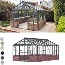 These superb greenhouses have been designed for the enthusiastic grower. Robinsons Rosette greenhouses are 10ft 7in (3208mm) wide and available in various lengths. They are outstandingly strong and well constructed. The width provides ample growing space. Central double doors allow for up to 37in wide (940mm) greenhouse staging to be positioned both sides. The Rosette features a 5ft 6in (1691mm) eaves height and a ground level door threshold allows freedom of movement for garden machinery and wheelbarrows and wheelchairs. The Rosette Greenhouse can also be fitted with a fully glazed partition to enable you to create a cost saving propagating area with a choice of either single or double doors.