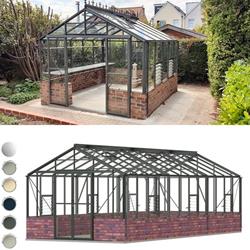 These superb greenhouses have been designed for the enthusiastic grower. Robinsons Rosette greenhouses are 10ft 7in (3208mm) wide and available in various lengths. They are outstandingly strong and well constructed. The width provides ample growing space. Central double doors allow for up to 37in wide (940mm) greenhouse staging to be positioned both sides. The Rosette features a 5ft 6in (1691mm) eaves height and a ground level door threshold allows freedom of movement for garden machinery and wheelbarrows and wheelchairs. The Rosette Greenhouse can also be fitted with a fully glazed partition to enable you to create a cost saving propagating area with a choice of either single or double doors.