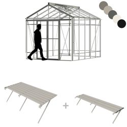 The extra high eaves of 6' 6" give this greenhouse a fantastic atmosphere that gives you and your plants a whole extra foot of headroom over the standard height Royale model. This extra height means that you can position your doors on the end or the side of the greenhouse. You will also have room to place two high level shelves above your staging - considerably increasing your growing capacity.