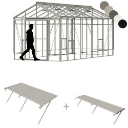 The extra high eaves of 6' 6" give this greenhouse a fantastic atmosphere that gives you and your plants a whole extra foot of headroom over the standard height Royale model. This extra height means that you can position your doors on the end or the side of the greenhouse. You will also have room to place two high level shelves above your staging - considerably increasing your growing capacity.