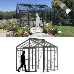 Robinsons Royale Reach Greenhouses are very popular in our professional range. This is not surprising since they are a full 8ft 8in (2636mm) wide and available in various lengths. Double doors are a particular feature of this model, they slide easily, are lockable and provide easy access over the ground level door threshold - ideal for wheelbarrow and wheelchair access. This Royale Reach model has the added benefit of extra high eaves at 6' 6" (1980mm). The Royale range also has the option of having a fully glazed partition with a 2ft (610mm) single sliding door. A real must if you want to create a cost saving propagating area to conserve heat.
