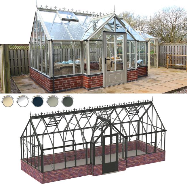 9' x 24' Robinsons Rushby - 9ft Deep Victorian Dwarf Wall Greenhouses With Porch