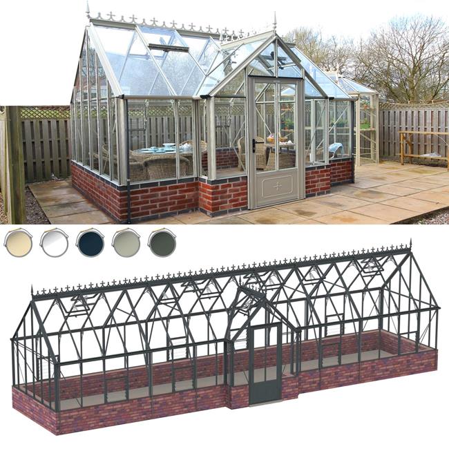 9' x 36' Robinsons Rushby - 9ft Deep Victorian Dwarf Wall Greenhouses With Porch