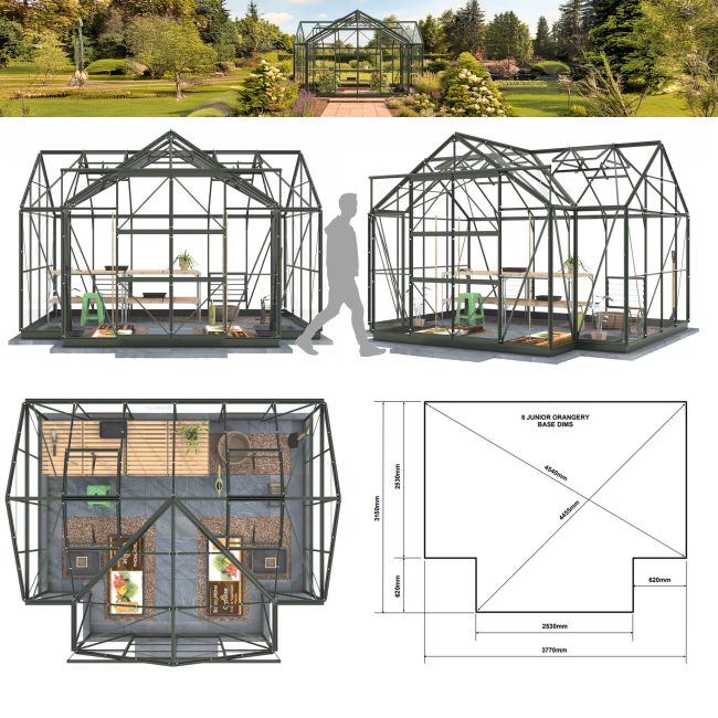 Powder coated in a durable Old Coittage Green coloured finish, this Orangery will blend in nicely in the garden making both a feature and a useful structure for either growing or enjoying outdoor life.