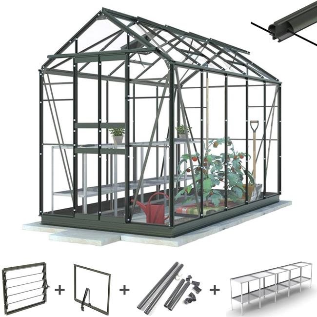 5' x 10' Simplicity Stafford - Aluminium Greenhouse - Ultimate Package - Green