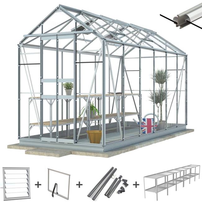 5' x 12' Simplicity Stafford - Aluminium Greenhouse - Ultimate Package - Silver