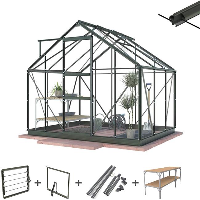 8' x 6' Simplicity Sun - Aluminium Greenhouse - Ultimate Package - Green