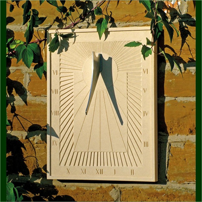 The cast stone Arcadian Wall Sundial includes the stainless steel gnomon and was designed for south facing walls. This decorative ornament gives an insight into the workings of a wall sundial.