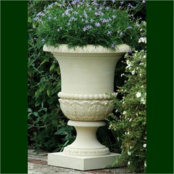 The Campana Vase is a large, elegant garden planter with traditional design features. The campana-shaped bowl, in the form of an upturned bell, features stylised acanthus leaf decoration. Perfect for formal gardens and terraces.