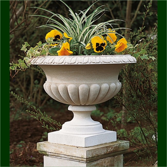 The Clarence urn is an elegant cast stone garden planter. Inspired by the designs of the Regency period, the urn has been crafted as a contemporary piece to the existing Regency and Trafalgar urns. The simple design has leaf moulding to the rim and gadrooning to the bowl. These garden planter is perfect for placing on a pedestal or plinth.