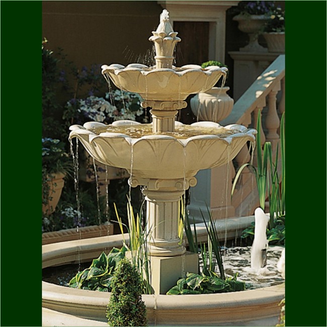Incorporating the top tiers of the Triple Lotus Fountain, this design was launched at the 1998 Chelsea Flower Show.