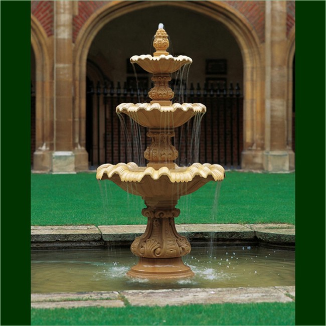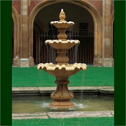 The original for this exquisite triple fountain stood in the Cloister Court of Eton College, Windsor. The badly eroded original has now been replaced by a replica to restore this feature to its former glory. The fountain comprises ornate pedestals supporting three decorative shell bowls surmounted by a naturalistic bud.