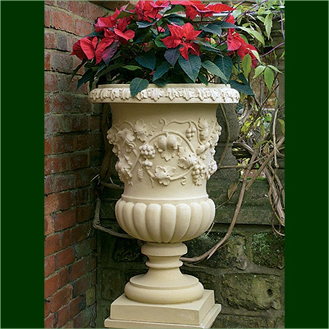 Reproduced from an ornate early XIX century urn acquired from Florence this design is swathed in a rich vine relief with gadrooning round the base.