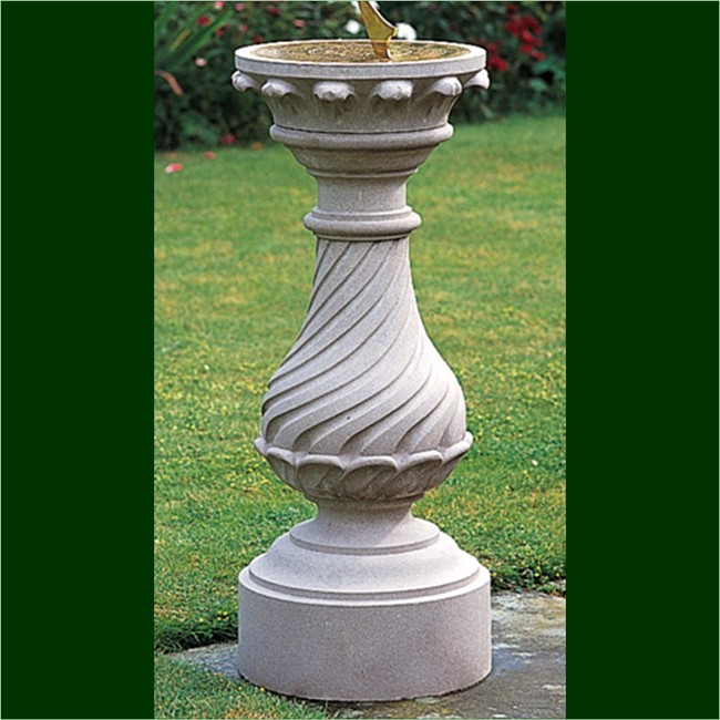 A beautiful baluster-style sundial, after James Gibbs. The sundial table is decorated with artificial leaf mouldings repeating the design at the base of the strigillated baluster shaft