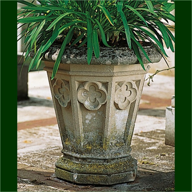 Regency-style octagonal vase with single quatrefoil panels. Ideal for decorating a terrace.