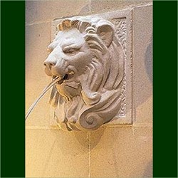 A handsome lion mask mounted on a square stone, which traditionally is used as a wall fountain. Designed to be built into a wall.